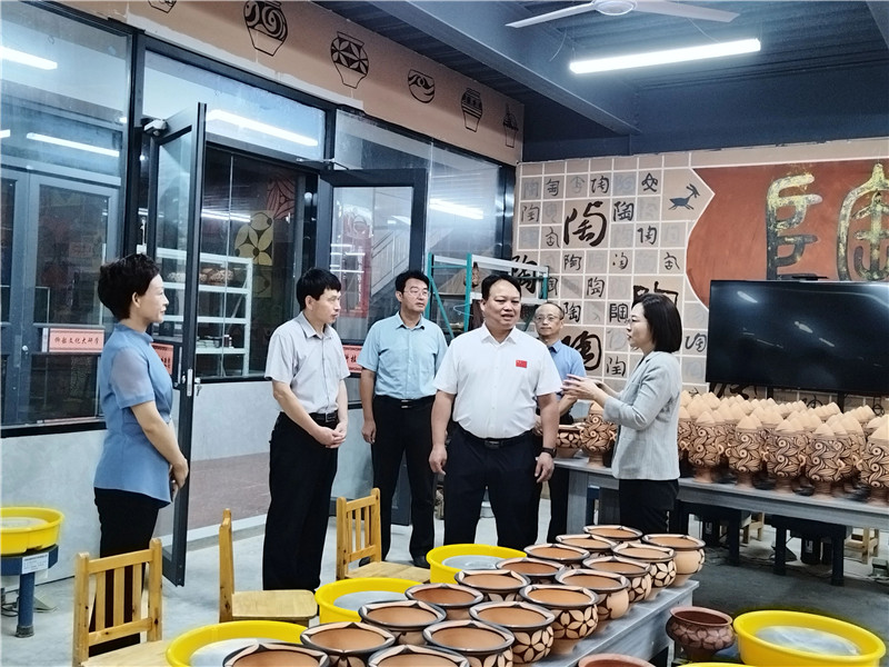 魏雷東一行分別到我公司的生產(chǎn)車間、研學(xué)基地、彩陶藝術(shù)館等地進行了實地考察,對我公司的彩陶制作工藝、非遺保護、文創(chuàng)研發(fā)等工作給予肯定,并就下一步校企合作、名師工作室等事宜進行座談交流。